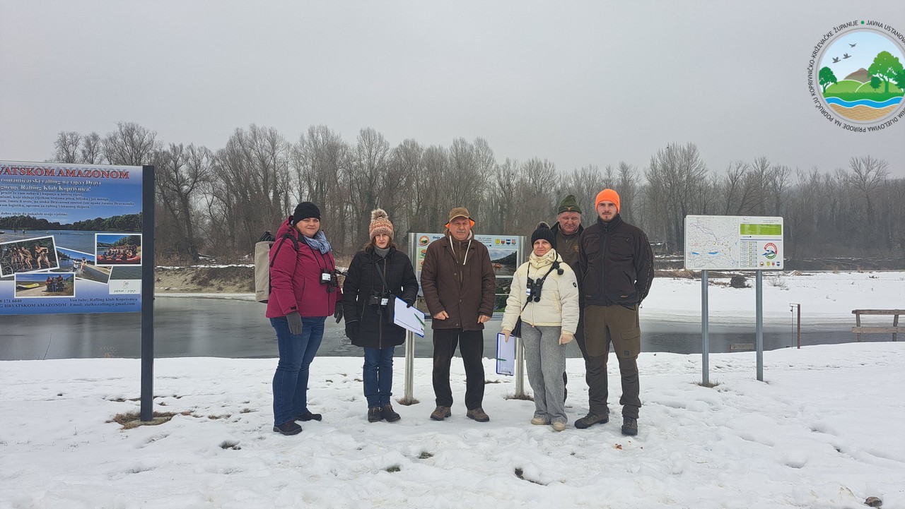 Također za tu aktivnost uputila je i obavijest javnosti u kojoj je pozvala sve zainteresirane da se uključe u ovogodišnju aktivnost zimskog prebrojavanja ptica vodarica. Javna ustanova za ovogodišnje prebrojavanje odabrala je nekoliko lokacija na području Koprivničko-križevačke županije koje su unaprijed određene od strane IWC-a. Prebrojavanje je obavljeno na tri lokaliteta u Koprivničko-križevačkoj županiji i to: lokalitetu pod nazivom Drava river 24 (231 – 240 rkm Legrad), identifikacijskog koda HR00347, lokalitetu pod nazivom „Soderica 1 gravelpit“, identifikacijskog koda HR00765 i lokalitetu pod nazivom „Autoput gravelpit“ identifikacijskog koda HR01090. U spomenuto prebrojavanje su se osim Javne ustanove uključili i članovi Lovačke udruge „Kuna“ Legrad, te predstavnici Općine Legrad. Kako bi sudionicima akcije omogućila lakše uočavanje i prepoznavanje vrsta ptica, Javna ustanova podijelila im je dalekozore i materijale s fotografijama ptica koje najčešće obitavaju na lokalitetima prebrojavanja. Uz to svaki sudionik prebrojavanja dobio je obrazac za evidenciju uočenog broja i vrste ptice. Na promatranim lokalitetima sudionici prebrojavanja uočili su brojne vrste ptica, a najviše ptica vodarica od kojih su neke i rijetke, strogo zaštićene, te ciljne vrste ptica Natura 2000 područja Gornji tok Drave (HR1000014). Nakon završenog prebrojavanja, sve prikupljene podatke dobivene na sva tri lokaliteta, Javna ustanova nakon obrade dostavila je regionalnom koordinatoru za zimsko prebrojavanje ptica, te će ih uvrstiti u svoju bazu podataka vezanu za ptičje vrste na zaštićenim i Natura 2000 područjima u Koprivničko-križevačkoj županiji.