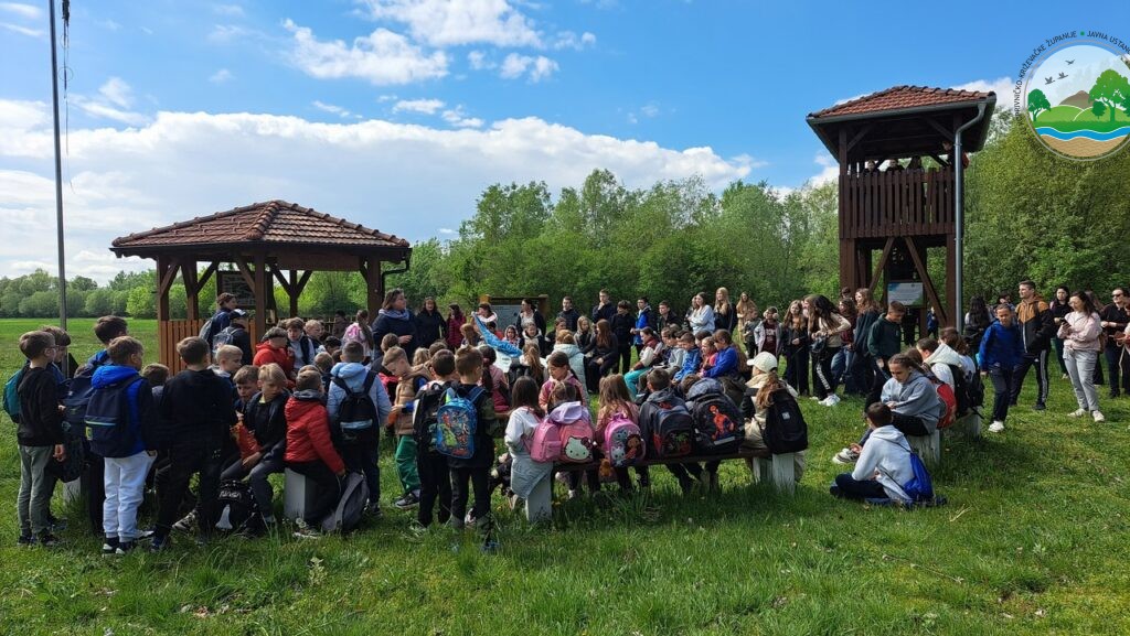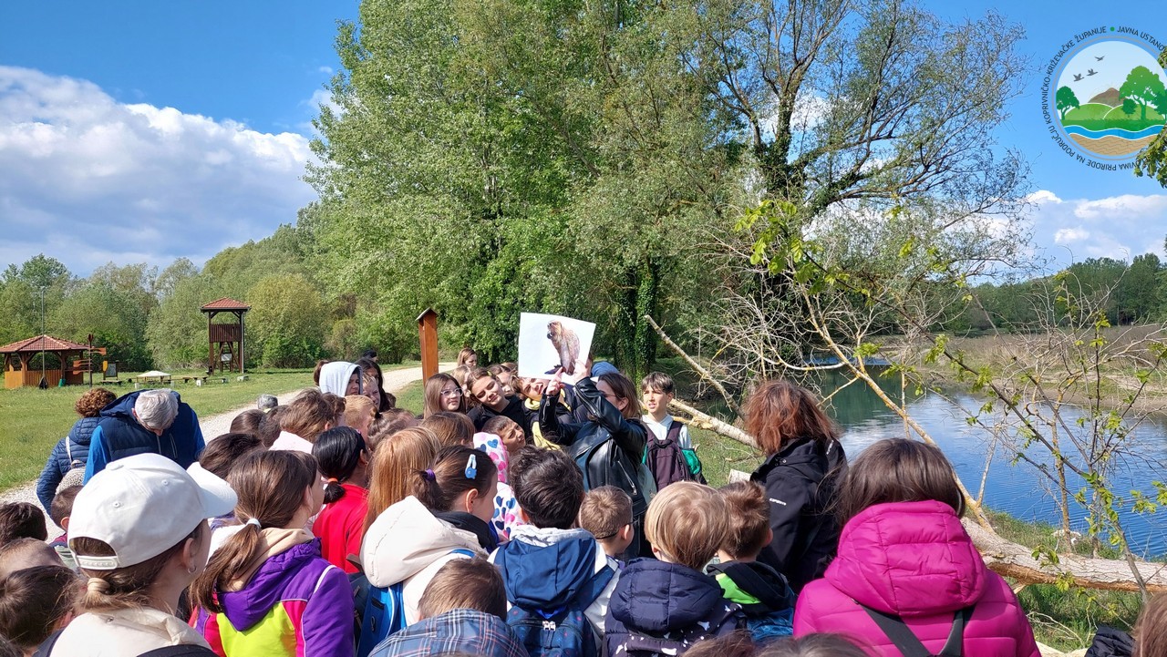 U sklopu svojih edukativnih aktivnosti i suradnje s školama, a kao i jednu od aktivnosti povodom obilježavanja Dana planeta Zemlje, Javna ustanova za upravljanje zaštićenim dijelovima prirode na području Koprivničko-križevačke županije je dana 21. travnja 2026. godine za 125 učenika Osnovne škole „Prof. Blaž Mađer“ iz Novigrada Podravskog i njihove nastavnike, održala terensku nastavu na području Regionalnog parka Mura-Drava i Posebnog ornitološkog rezervata „Veliki Pažut“. Prvi dio aktivnosti proveden je na području Halaš Čarde blizu prve „Škole uz rijeku Koprivničko-križevačke županije“ gdje su učenici kroz šetnju po poučnoj stazi kroz različite slikovne i tekstualne sadržaje dobili brojne informacije o tom višestruko zaštićenom prirodno vrijednom području, te brojnim vrstama koje žive, obitavaju i rastu u njemu. S obzirom da se to područje nalazi u blizini ušća Mure u Dravu učenicima su dane informacije i o dinamici rijeka, te im je kroz različite slikovne sadržaje prikazano kako se tok ušća rijeka mijenjao tijekom godina. Drugi dio aktivnosti održan je na području Posebnog ornitološkog rezervata „Veliki Pažut“, te u Edukacijskom vodnom centru koji je uređen u okviru projekta „DRAVA LIFE“, a u kojem su učenike dočekale i predstavnice Hrvatskih voda. S obzirom na velik broj učenika, učenici su podijeljeni u dvije grupe, te je jedna grupa ostala je u Edukacijskom vodnom centru gdje im je prikazan film „Novi život uz Dravu“, koji je također izrađen u sklopu spomenutog projekta, dok je druga grupa obišla dio zaštićenog područja Posebnog ornitološkog rezervata „Veliki Pažut“. Šetnjom po tom zaštićenom području učenicima je predstavljeno područje na kojem Javna ustanova u okviru projekta „LIFE RESTORE for MDD“ provodi aktivnosti uklanjanja, praćenja i kontrole širenja biljnih invazivnih stranih vrsta, te su im dane informacije zašto su one štetne za bioraznolikost područja na kojem se nalaze. Osim toga s obzirom da je to šumsko područje u kojem prevladavaju poplavne šume vrba i topola imali su prilike saznati nešto više o tim šumama i zašto su nam one važne, ali i o brojnim legendama vezanim uz područje uz rijeku Dravu.