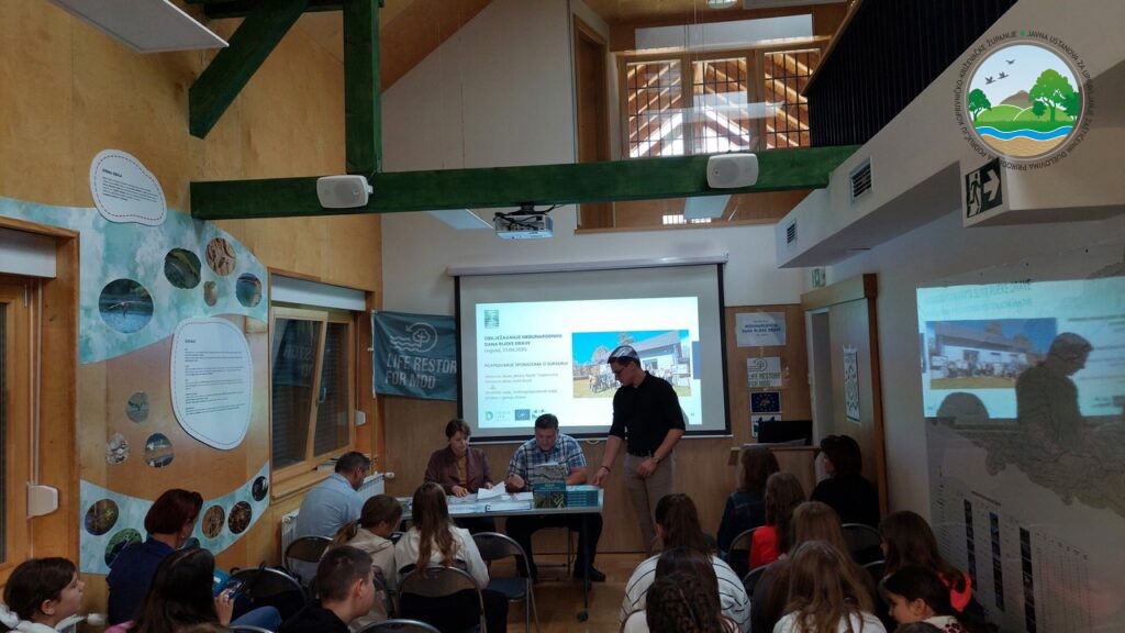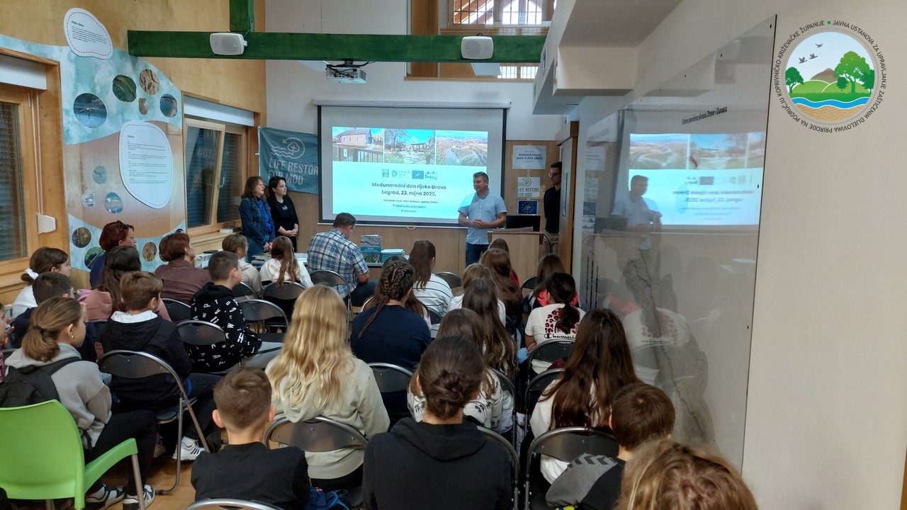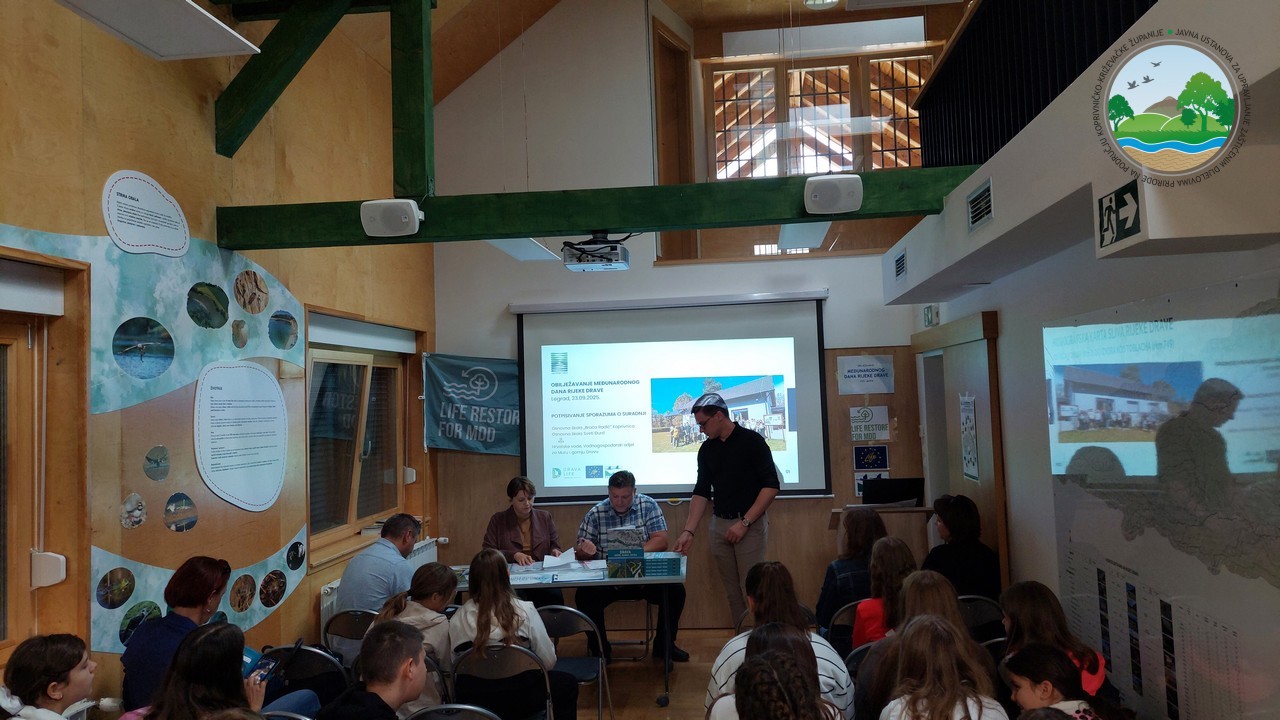 Zajedničkom suradnjom Javne ustanove za upravljanje zaštićenim dijelovima prirode na području Koprivničko-križevačke županije, Javne ustanove za upravljanje zaštićenim dijelovima prirode Varaždinske županije, te Hrvatskih voda, VGO za Muru i gornju Dravu, Varaždin dana 23. rujna 2025. godine organiziran je i obilježen Međunarodni dan rijeke Drave. Na njemu je sudjelovalo 80-tak učenika s područja Koprivničko-križevačke i Varaždinske županije i to iz Osnovne škole „Braće Radić“ Koprivnica i Osnovne škole Sveti Đurđ. Taj događaj osmišljen je kako bi se učenicima i njihovim nastavnicima pružila prilika za stjecanje novih znanja i iskustava vezanih za očuvanje prirode i rijeka, te aktivno sudjelovanje u zaštiti okoliša. Prvi dio događaja održan je u Edukacijskom vodnom centru u Legradu (u daljnjem tekstu: EVC), gdje se je svim prisutnima, osim organizatora događaja, obratio i predstavnik Koprivničko-križevačke županije Denis Maksić koji je učenicima poželio dobrodošlicu i dobar rad, nakon čega su uslijedile prezentacije. Kroz prezentacije organizatora učenici su imali prilike nešto više čuti i saznati o rijeci Dravi, njenoj dinamici, bioraznolikosti i krajobraznoj raznolikosti, invazivnim stranim vrsta, posjetiteljskoj infrastrukturi, projektu „DRAVA LIFE“ u okviru kojeg je i izgrađen EVC i sl. Kako bi uspostavili suradnju, nakon prezentacija uslijedilo je svečano potpisivanje Sporazuma o suradnji između Hrvatskih voda i spomenutih škola. Drugi dio događaja provodio se na terenu gdje su učenici zaustavljajući se na nekoliko punktova podijeljenih u pet tematskih cjelina, imali prilike na praktičan način kroz različite aktivnosti i igre, vidjeti i naučiti o obnovi riječnih rukavaca, invazivnim stranim vrstama i njihovom uklanjanju, ptičjem svijetu i građenju gnijezda, šumama i šumskim staništima, te legendama vezanim za rijeku Dravu i njeno područje. Osim toga, s obzirom da se dio aktivnosti održao i na projektnom području Javne ustanove za upravljanje zaštićenim dijelovima prirode na području Koprivničko-križevačke županije u kojem ona u okviru projekta „LIFE RESTORE for MDD“ provodi aktivnosti uklanjanja invazivnih stranih vrsta, učenici su imali prilike vidjeti te invazivne strane vrste, te se uključiti u akciju njihova uklanjanja. Kako bi uspješno uklonili invazivne strane vrste (IAS) čivitnjaču/amorfu i zlatnicu koje rastu na tom području, Javna ustanova za upravljanje zaštićenim dijelovima prirode na području Koprivničko-križevačke županije je za njih pripremila adekvatnu opremu i alate, odnosno rukavice, škare, te vreće u kojima su nakon uklanjanja zbrinute spomenute IAS vrste.